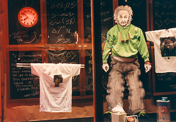 Featuring various quotes and formulas, and fun Einsteinian merchandise. A fav quote: "Time and space..... intertwingle." ~ Peter Hansen (my T.A. in physics at UofM) |